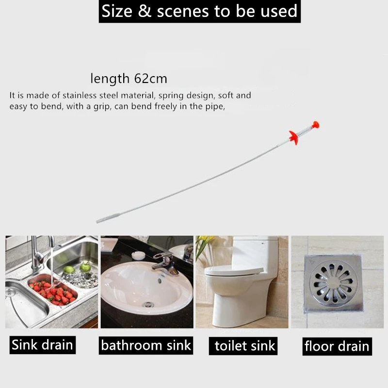 Bathroom Spring Sewer Dredging Tool Kitchen Bendable Sink Tub Toilet Hair Filter Pipe Clean Hook Dredging Tools