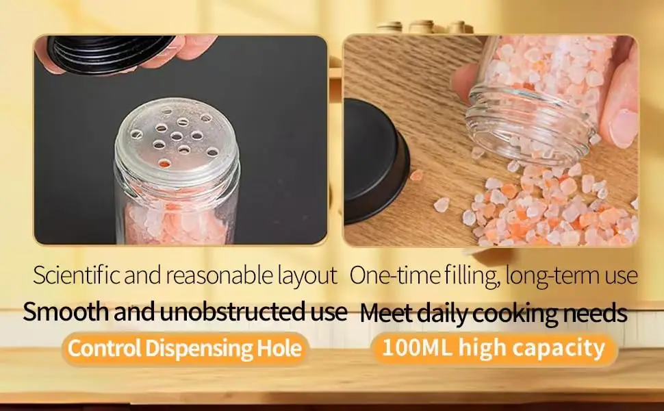 ✅ 18PCS 100ML FOOD-GRADE GLASS JARS – Each jar (3.74"x1.97") is made of BPA-free borosilicate glass (heat-resistant, anti-crack), perfect for storing salt, pepper, oregano, basil & other seasonings. Leak-proof dispensing holes control portion to avoid waste.