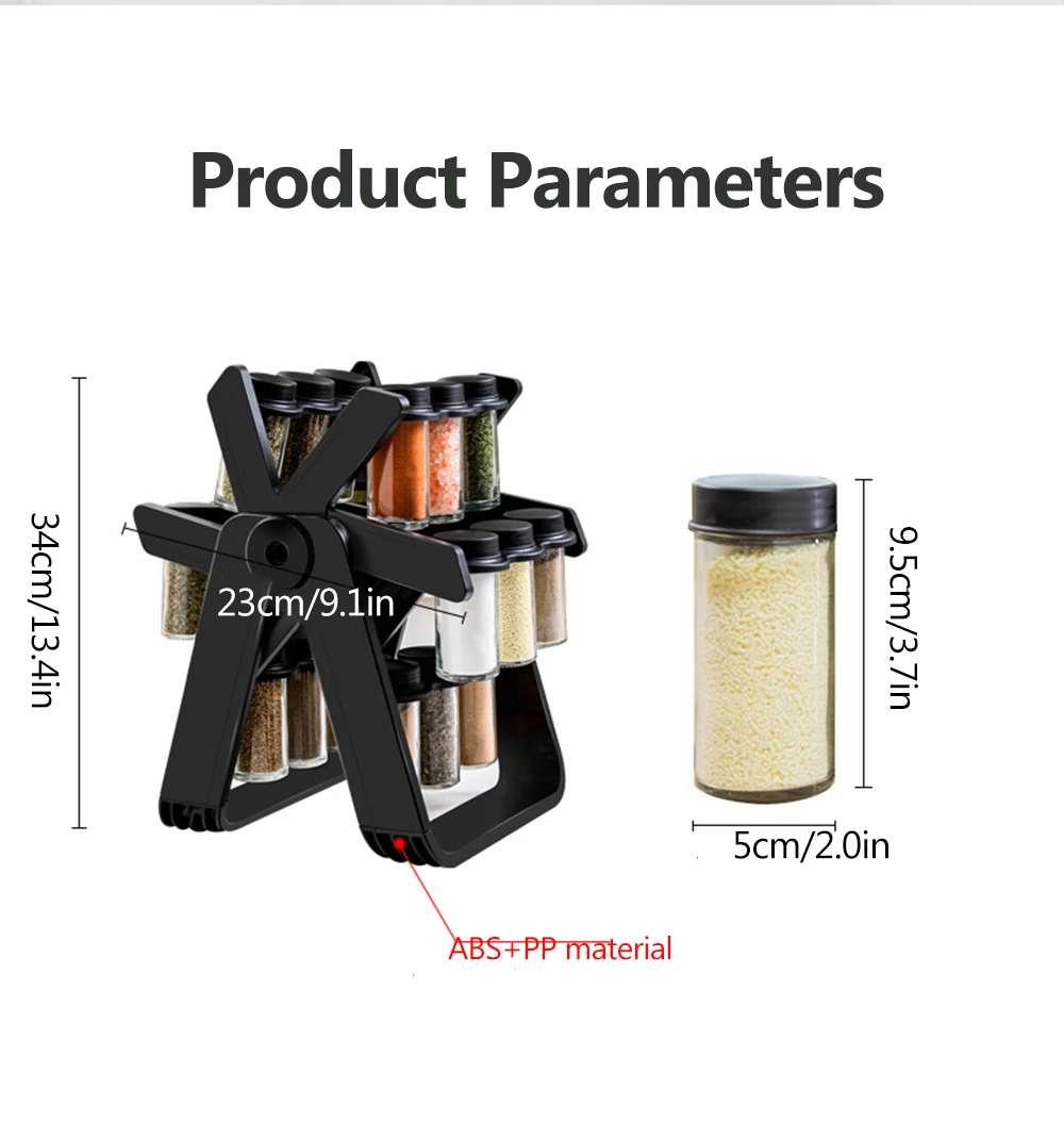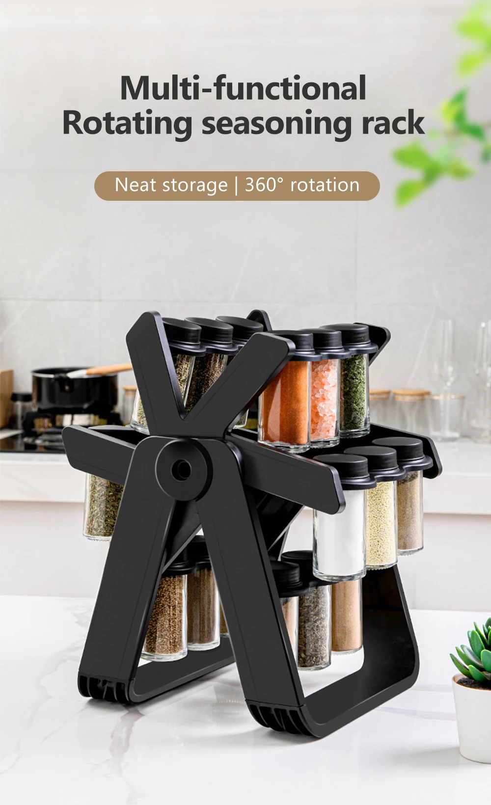 ✅ STURDY & DURABLE FOR DAILY USE – Thickened ABS frame + non-slip base ensures stability on countertops; secure clips hold jars tightly (no falling when rotating). Supports up to 5kg weight, durable for years.