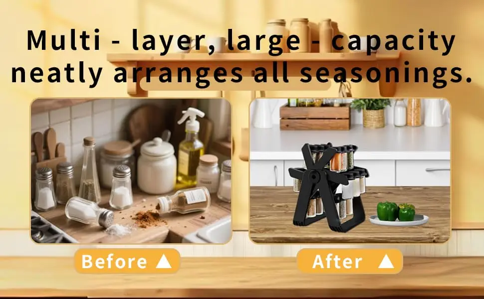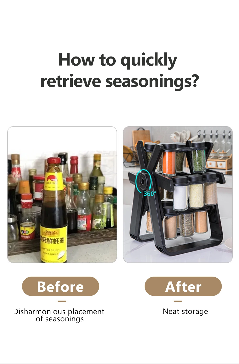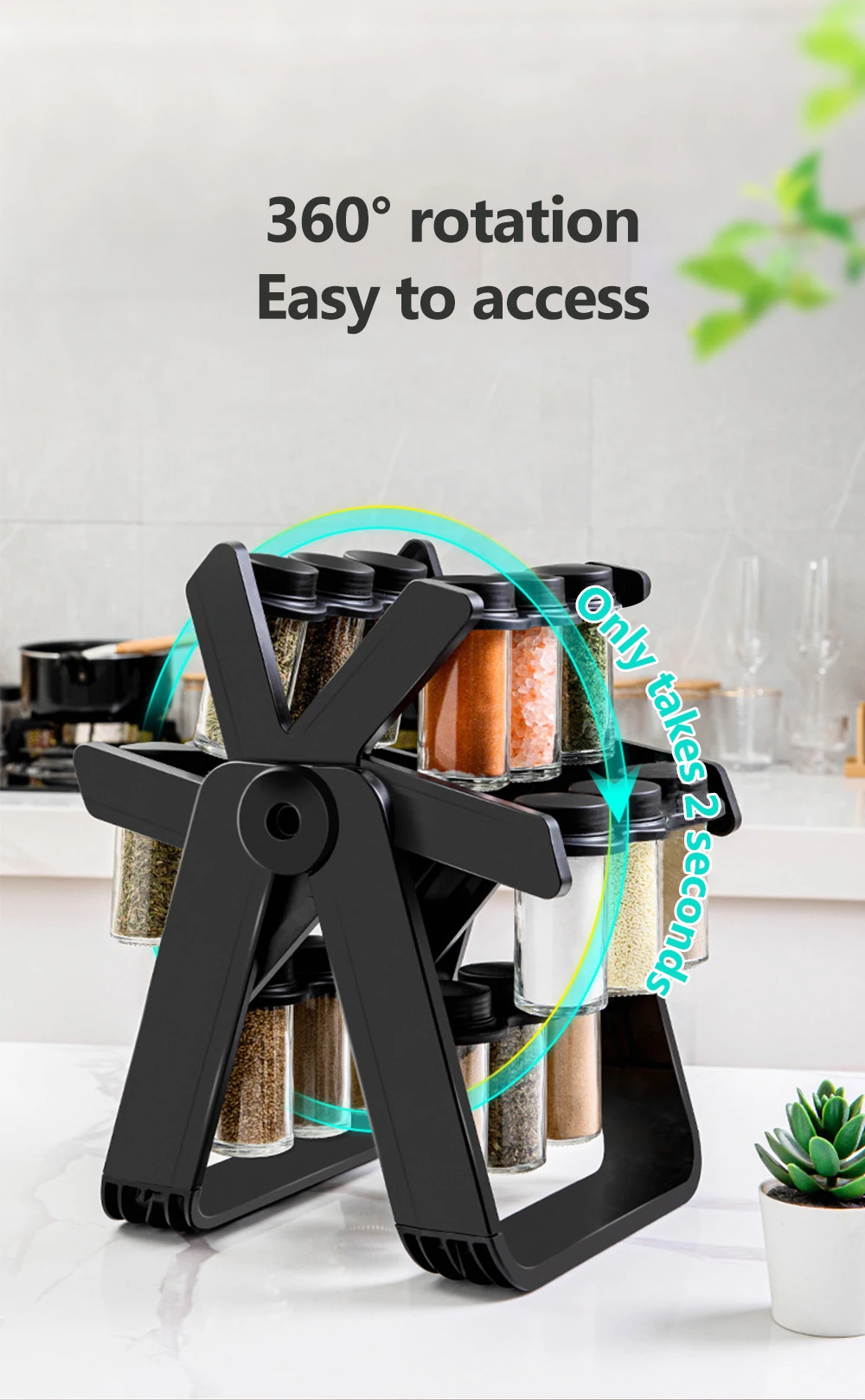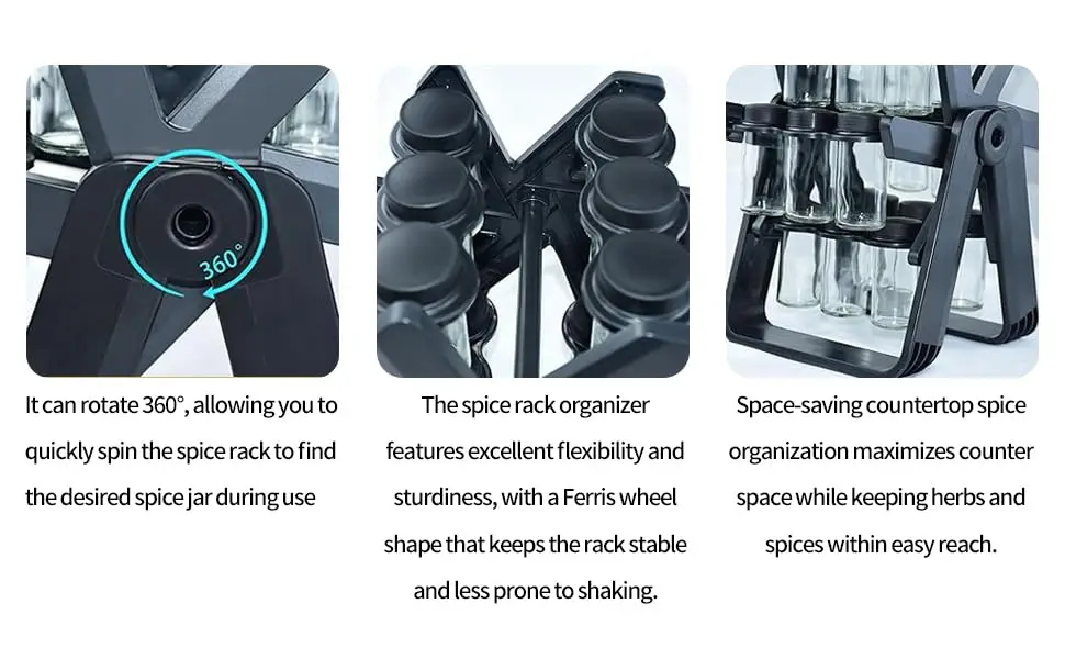 ✅ 360° ROTATING FERRIS WHEEL DESIGN – Elegant look adds kitchen style, while 10.2"x9"x13.4" compact size maximizes counter space (saves 60% vs traditional spice racks). Grab any spice in 1 second with smooth silent rotation.
